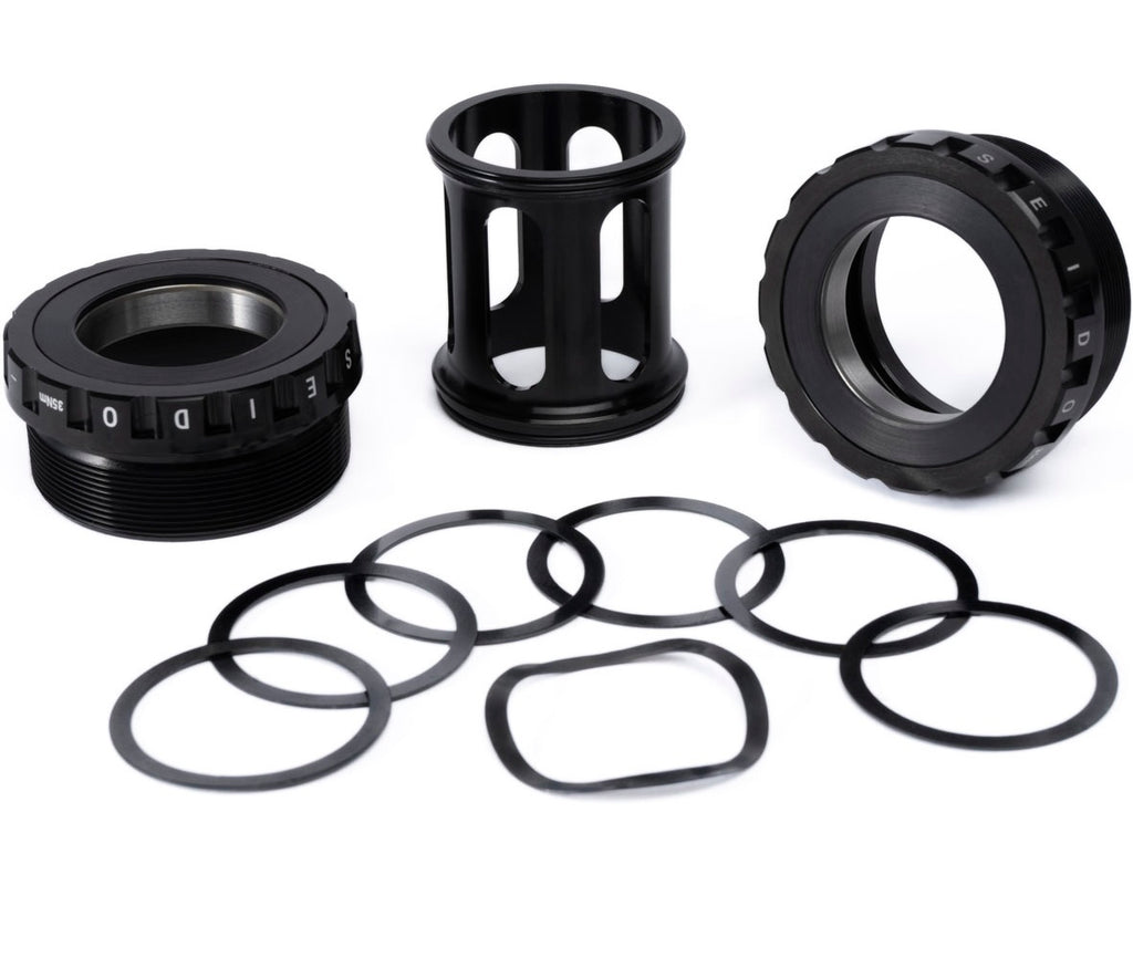 Our T47 BBs are machined to precision with the highest quality aluminium and bearings. They will fit 30 mm spindle cranks with the included washers, or can be fitted with our adapter kits to accept other crankset spindle standards. The BB sleeve has been designed to leave room for internal cable routing. Servicing or replacing bearings is an easy job thanks to easily accessible bearing races, even when fitted to the frame. Outer seals provide extra protection for the already double-sealed bearings. Our PRO BBs use 2x 6806 bearings (30 x 42 x 7mm, ID x OD x W).