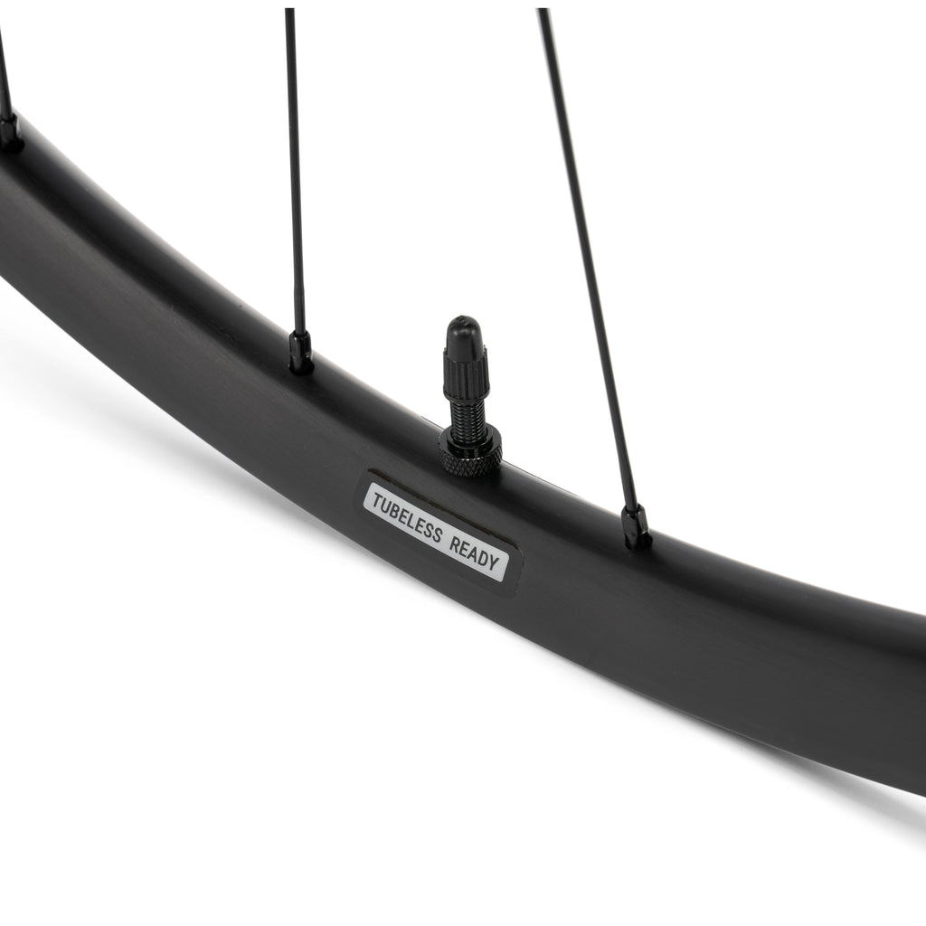 Aluminium, asymmetric rim design with 23 mm internal width, tubeless ready, hooked clincher, sleeved joint