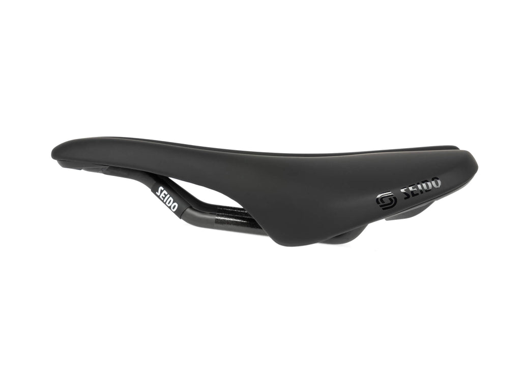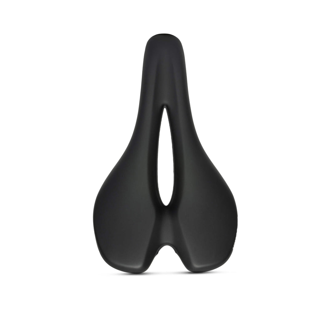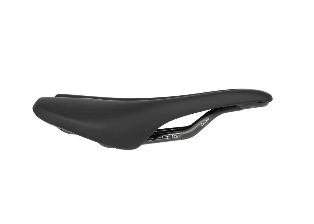 Reaktiver Sattel mit weitem durchgehendem Ausschnitt, leichten Carbon Streben und kurzer Nase für eine sportive Position.